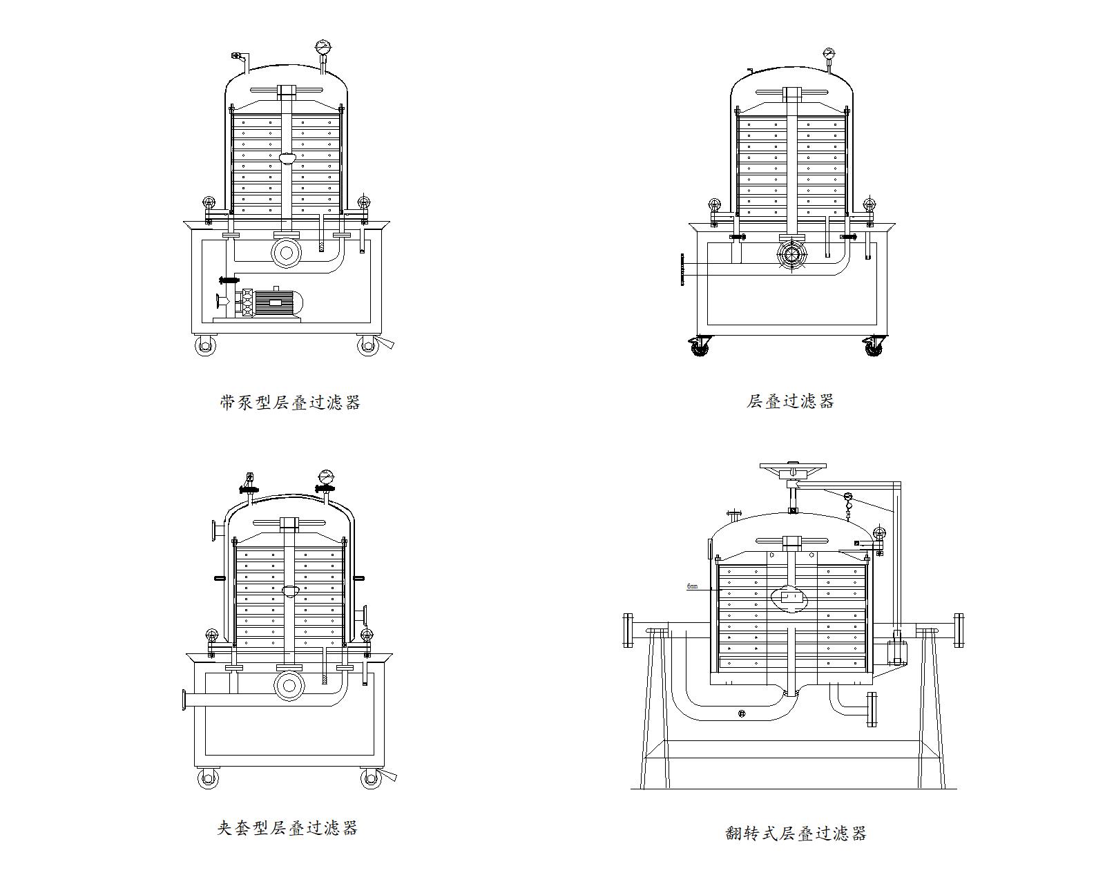 5、圓盤疊片過濾器由保溫過濾器和不保溫過濾器兩種,保溫層疊式板框過濾器,適用于制藥、精細(xì)化工過濾中液體溫度低而結(jié)晶的難題,本機(jī)有蒸汽加熱或電熱管加熱兩種,(夾套),三夾層也可以。